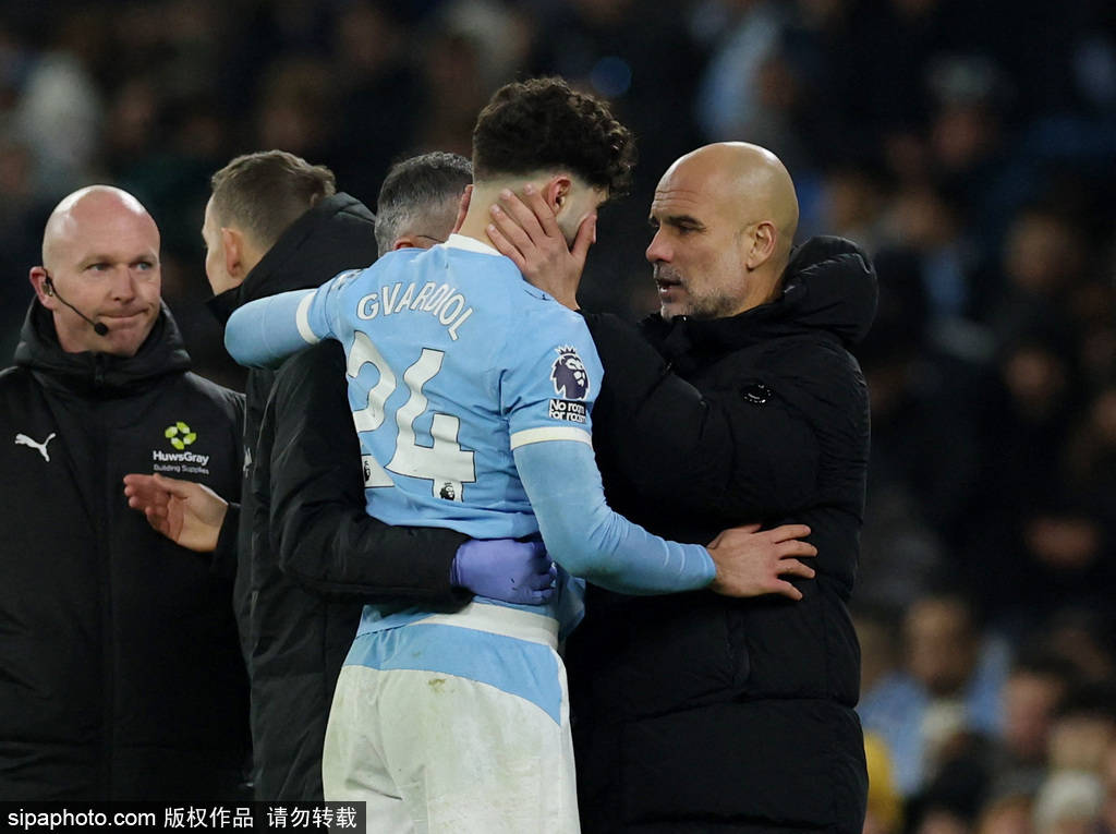 2025-26赛季英超第20轮,曼城主场1-1战平切尔西,格瓦迪奥尔在比赛第51分钟伤退。